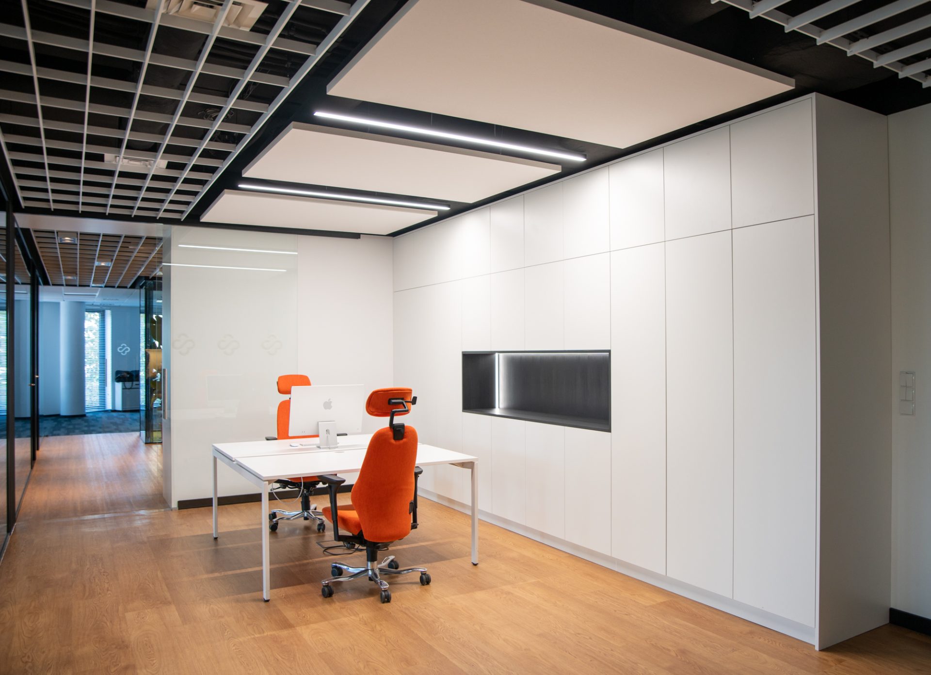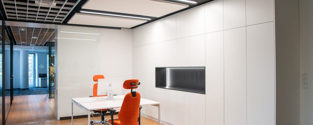 Najwyższą jakość i trwałość efektu, otrzymaliśmy dzięki wdrożeniu rozwiązań, które sprawdzą się w intensywnie użytkowanych wnętrzach biurowych, w tym: