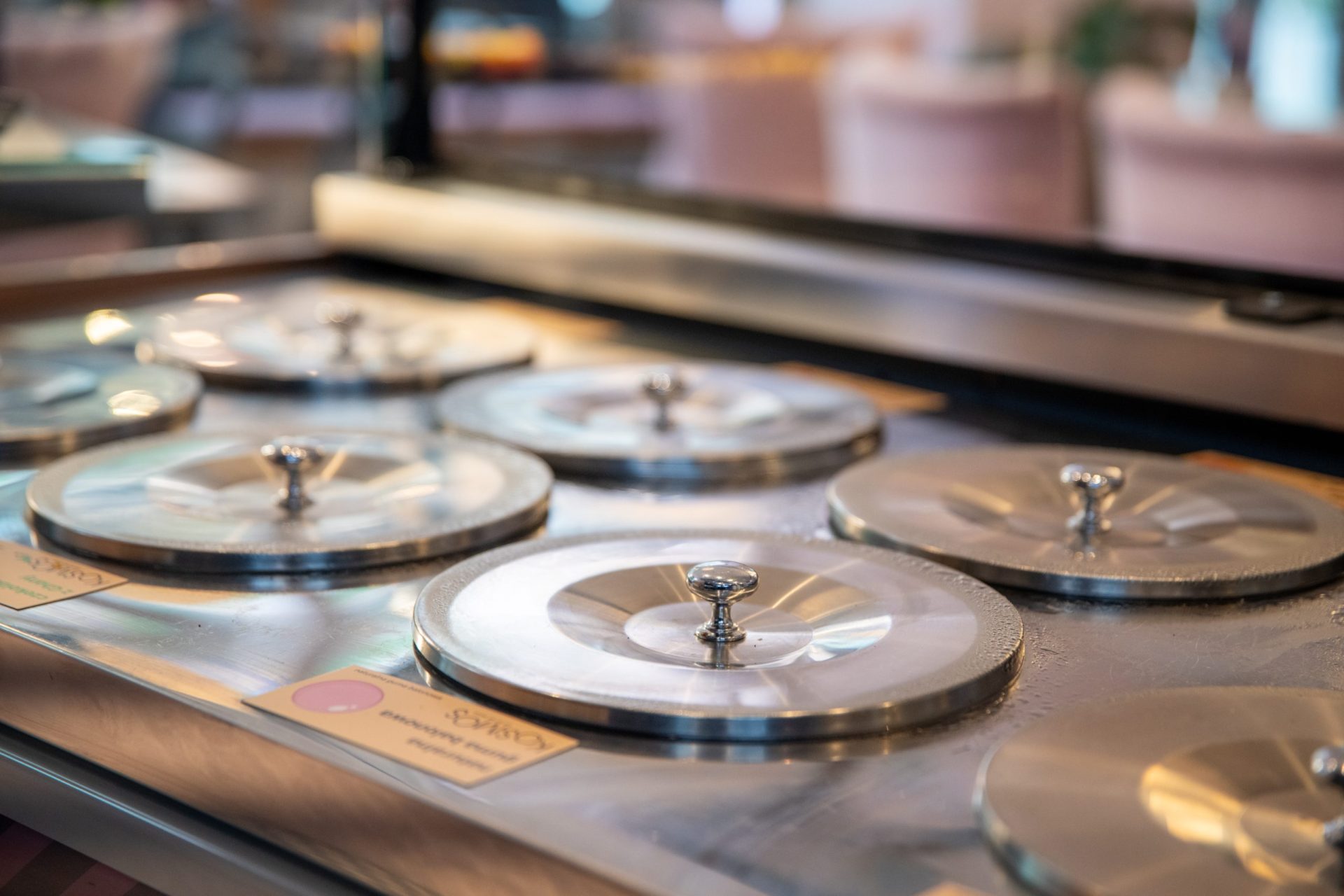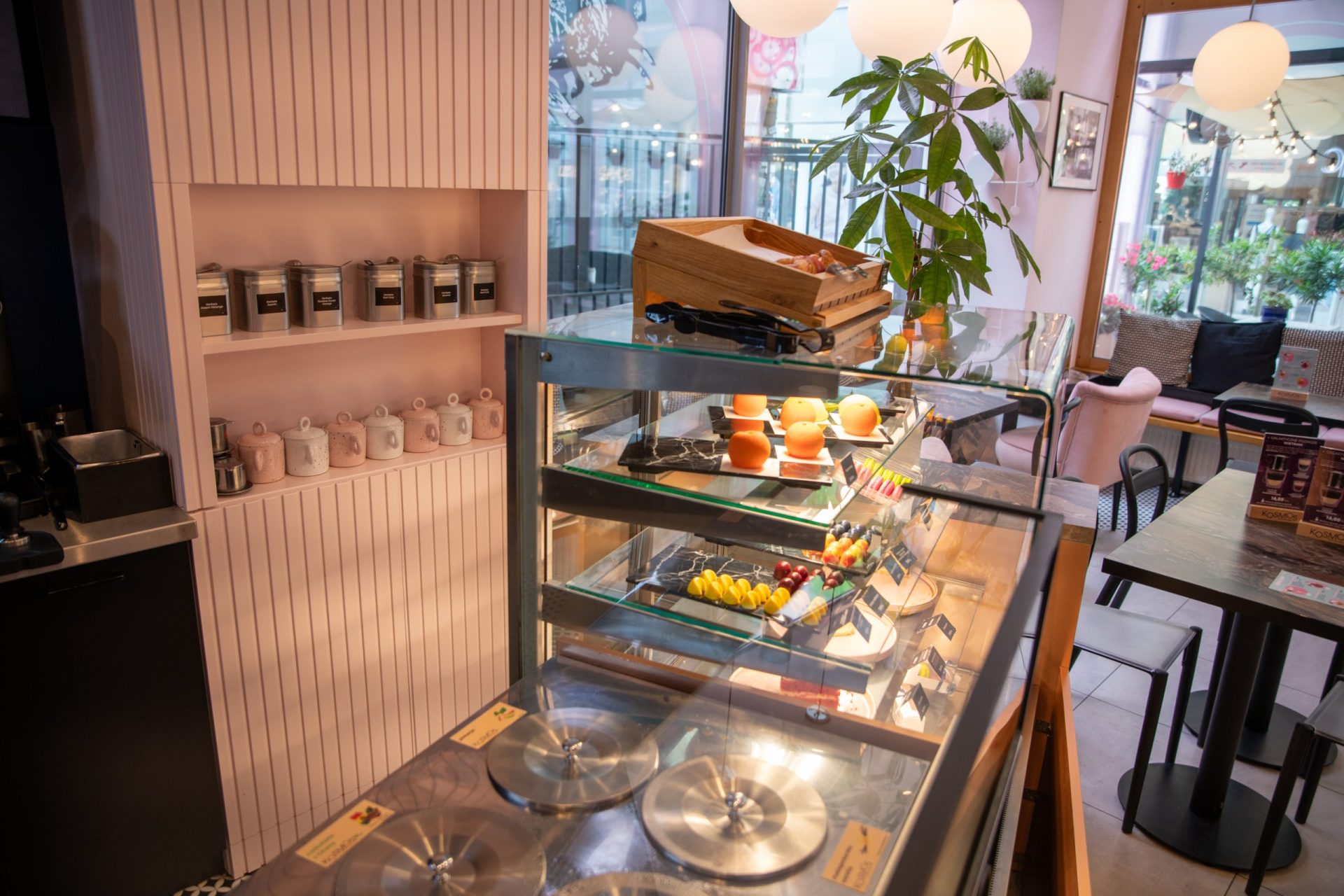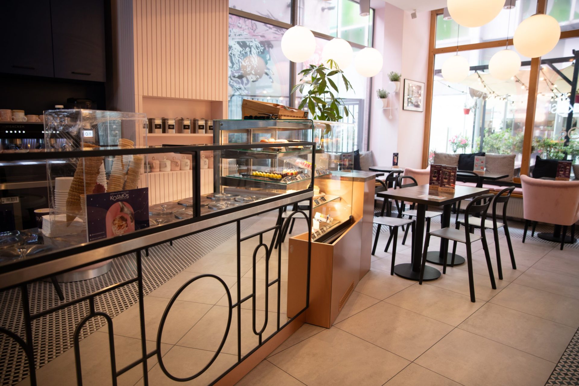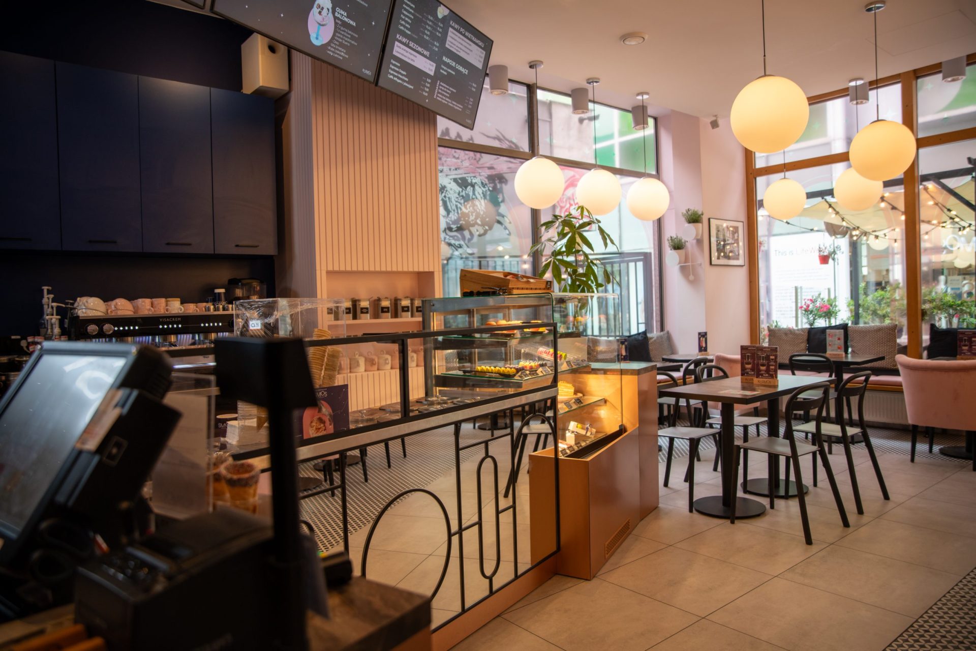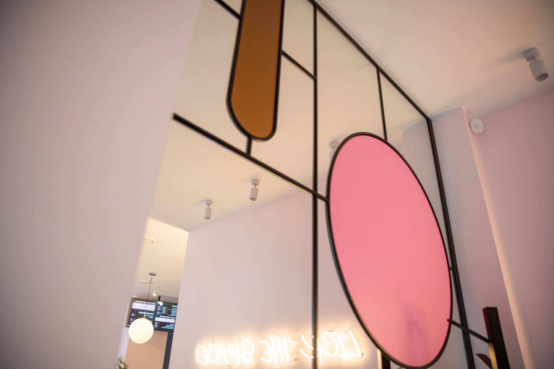 W centrum naszej instalacji znajduje się zabudowa główna, przeznaczona do obsługi klienta. Zewnętrzna część tej zabudowy została wykonana z laminatu metalizowanego w kolorze miedzi szczotkowanej, który nadaje jej nowoczesny i luksusowy charakter. Dodatkowego wyrafinowania dodaje panel, wykonany z frezowanego MDF-u w kolorze czarnego matu, wzbogacony wklejanymi lustrami. Wnętrze zabudowy od strony obsługi wykonane jest z czarnej płyty laminowanej oraz elementów z blachy nierdzewnej, co zapewnia trwałość i estetykę użytkowania.
