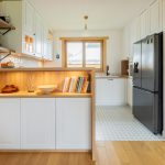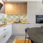 - Blaty: niestandardowa wysokość 97 cm; nad zmywarką i pod lodówką zastosowano wewnętrzne szuflady