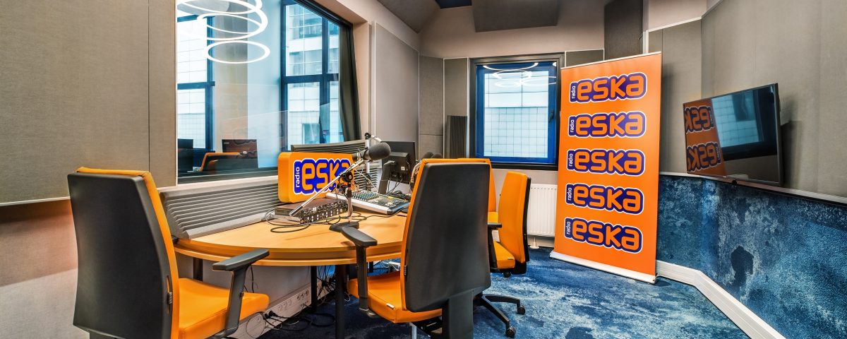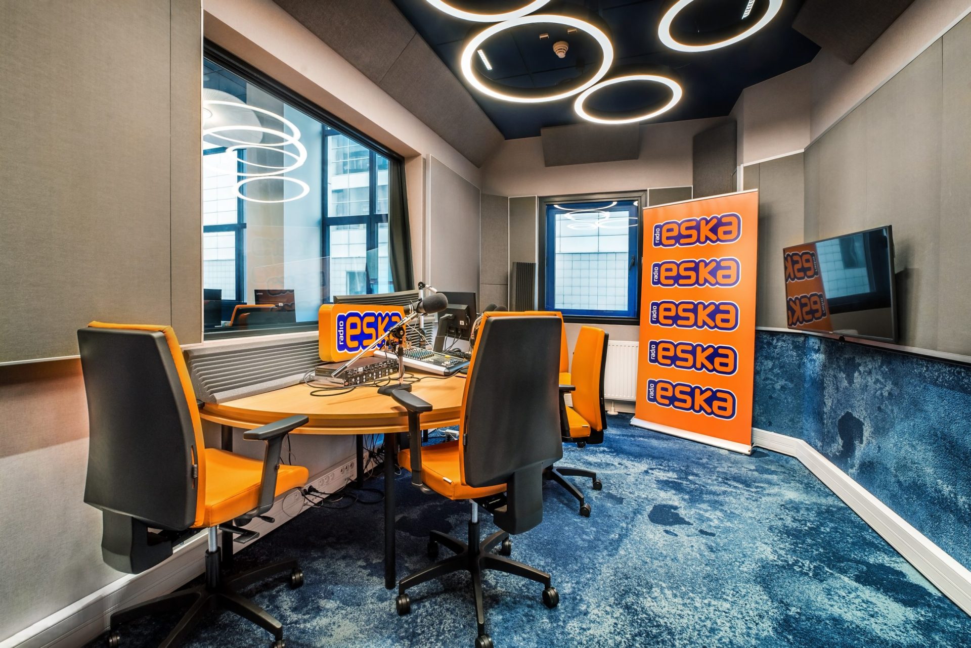 Studio radiowe to serce Radia ESKA, dlatego kluczowym aspektem było stworzenie ergonomicznej i funkcjonalnej przestrzeni. Stół w studiu został zaprojektowany i wykonany na miarę, uwzględniając potrzeby realizatorów i prowadzących audycje, przygotowany pod zaplanowane rozmieszczenie mikrofonów, sprzętu technicznego. Wnętrze jest zarówno estetyczne, jak i praktyczne. Jasne, drewniane wykończenia stołu w połączeniu z wytrzymałymi materiałami posłuży jeszcze przez wiele lat.