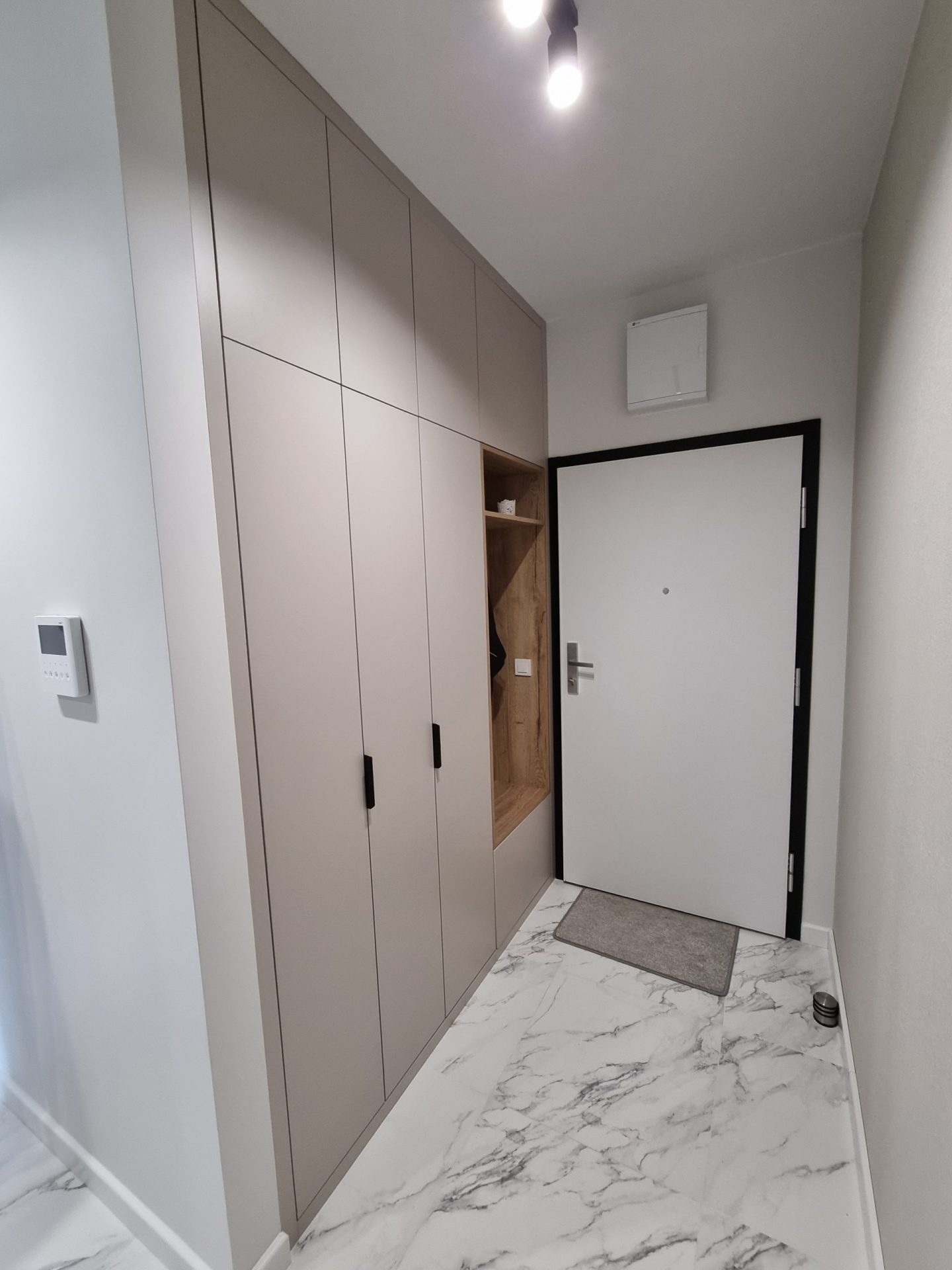 Projekt wnętrza mieszkania na warszawskim Żeraniu stanowi przykład harmonijnego połączenia nowoczesnej funkcjonalności i subtelnej estetyki, idealnie odpowiadając na potrzeby inwestorów. Murator Furniture odpowiadało za kompleksowe wykonanie kuchni, zabudowy w przedpokoju oraz stylowych mebli do sypialni i łazienki, w każdym pomieszczeniu dbając o detale oraz najwyższą jakość wykończenia.