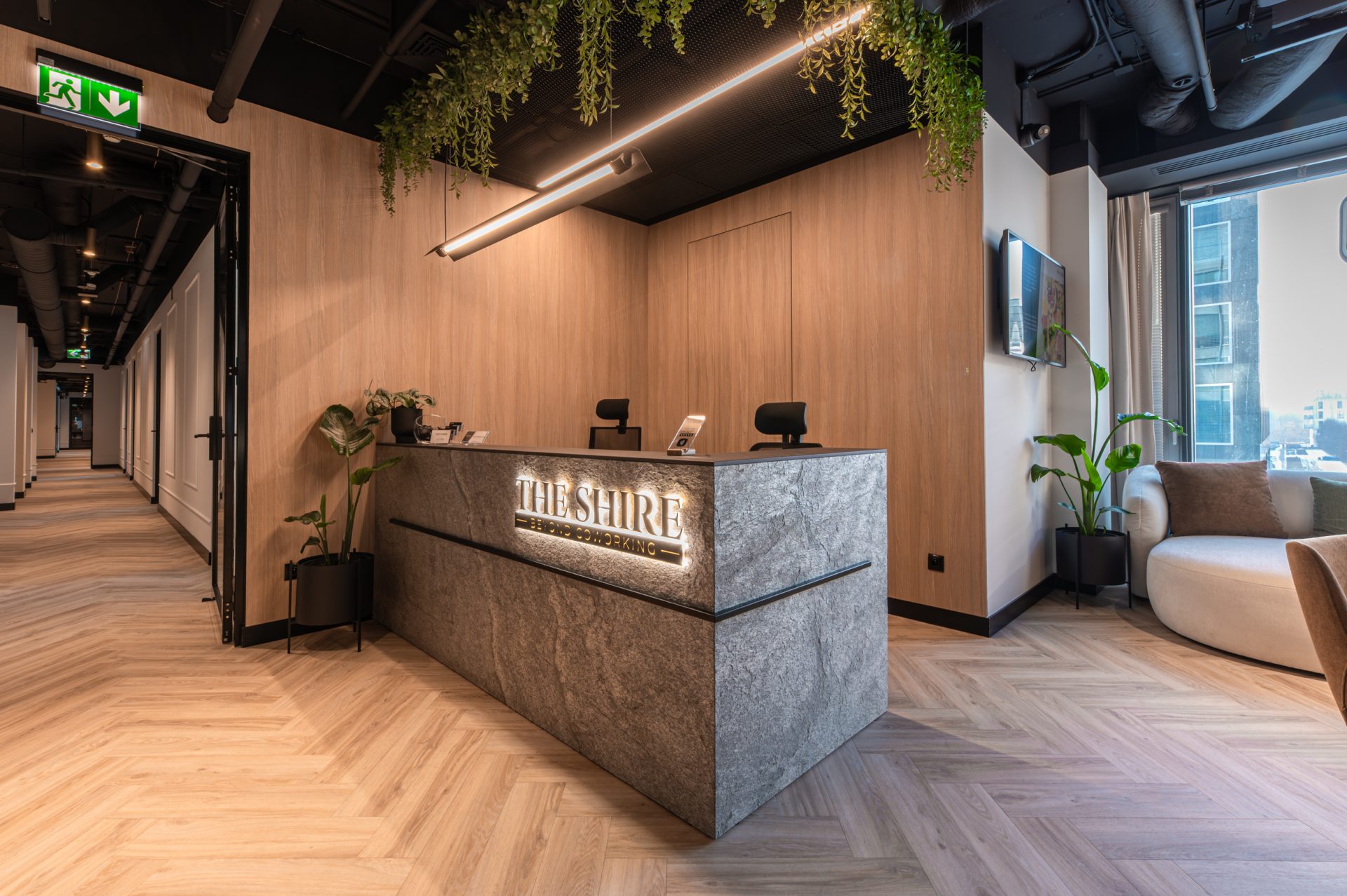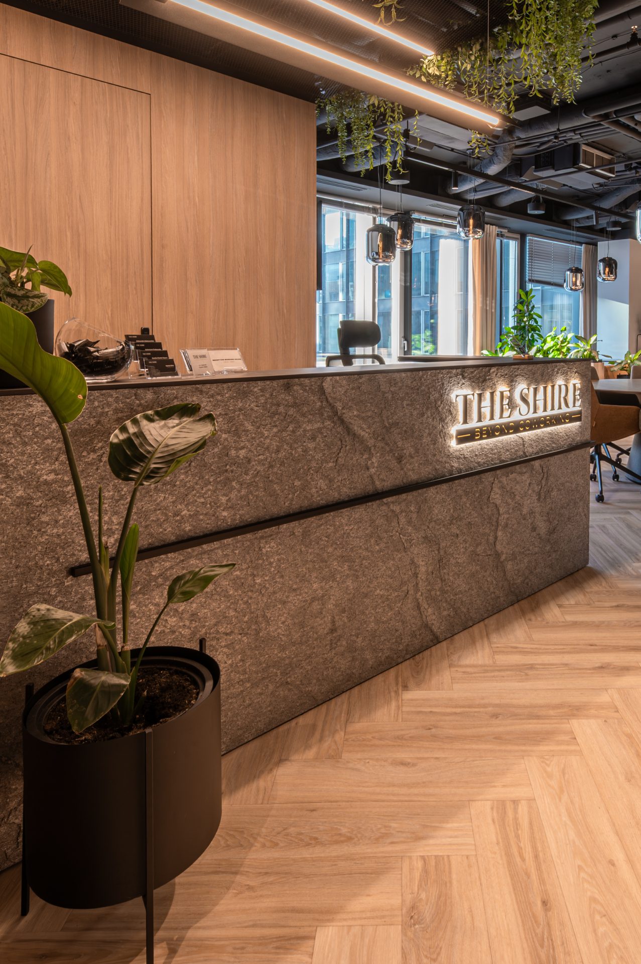 Koncept The Shire jest wykorzystywany przez szerokie grono najemców o zróżnicowanych potrzebach i modelach pracy, dlatego przestrzeń musiała spełniać nie tylko wysokie wymagania estetyczne, lecz przede wszystkim standardy trwałości, ergonomii i funkcjonalności. W tej realizacji szczególny nacisk położono na umiejętne połączenie efektywnych kosztowo rozwiązań z estetyką premium craft, bazującą na szlachetnych materiałach i dopracowanych detalach. Dzięki przemyślanemu doborowi materiałów, wysokiej jakości wykonania oraz ścisłej współpracy z Inwestorem powstała komfortowa, reprezentacyjna przestrzeń biurowa, która łączy wyrazisty, oryginalny design z praktycznymi rozwiązaniami odpowiadającymi na realne potrzeby użytkowników.